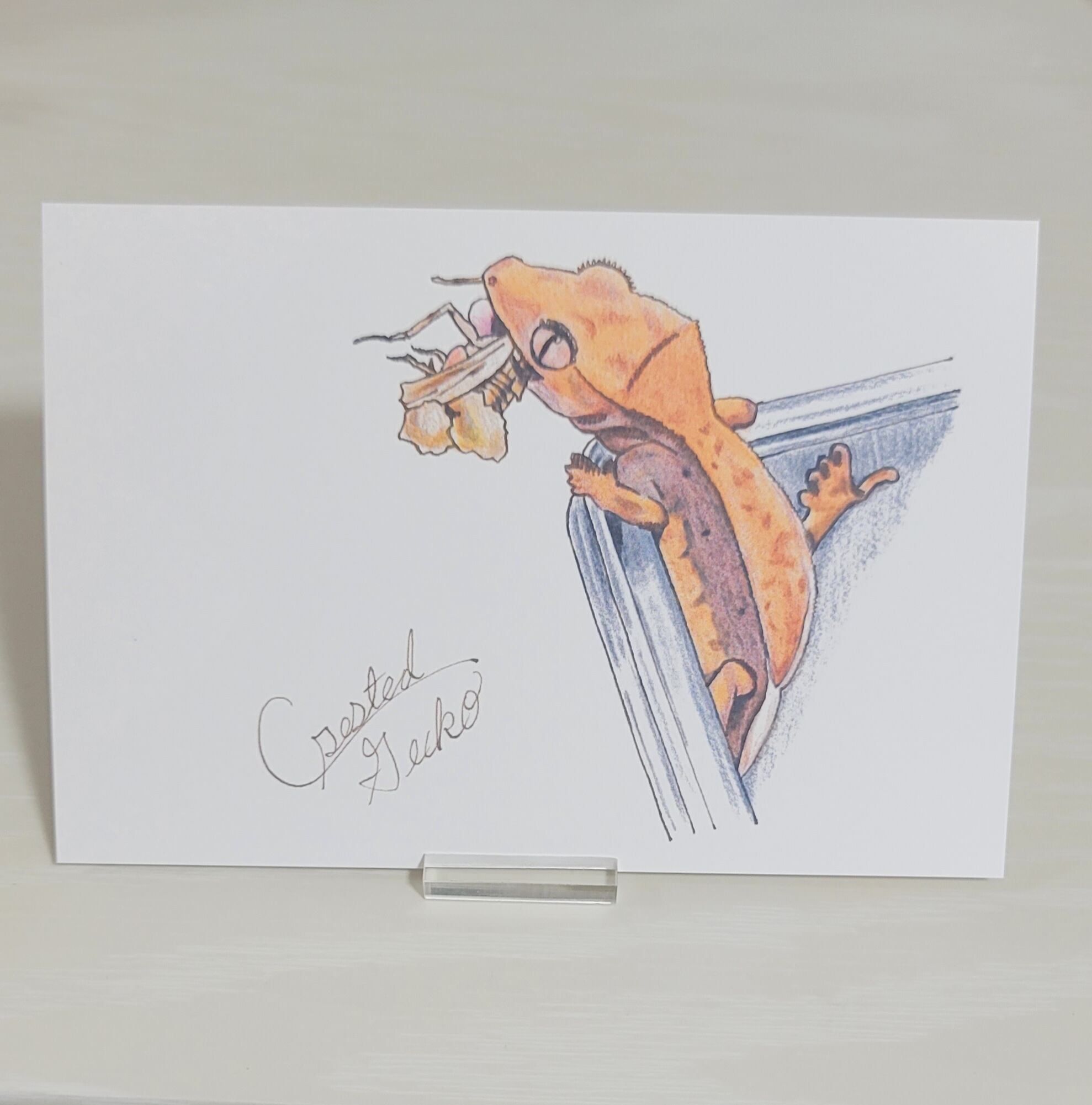 クレステッドゲッコーを手描きで描いたものをイラストカードにしました♪